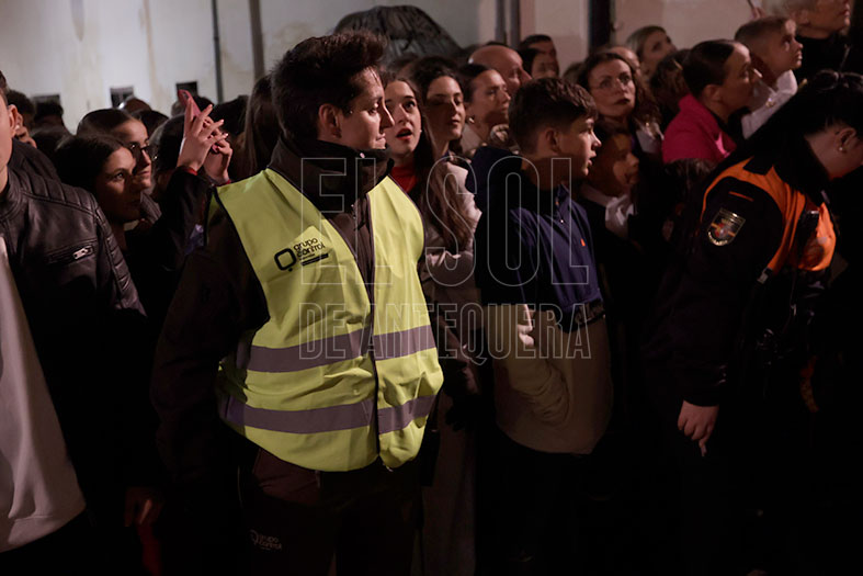 Llega la hora y deciden salir. ¡La que liaron los jóvenes dentro de Belén al enterarse que marcharían! Se abren las puertas y el barrio que parecía que iba a haber «encuentro» con los del Consuelo. Pero no, estaban allí para ver a la Virgen de los Dolores. Es el lugar con más gente en Semana Santa, junto a la salida de la Cruz Blanca con el Rescate o los añorados «encuentros» de Paz y Socorro en San Sebastián.