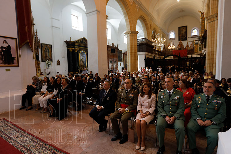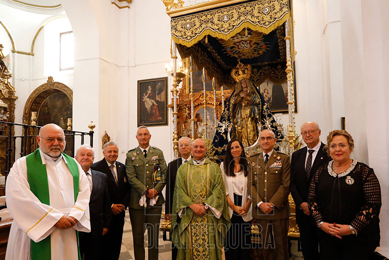 El 75 aniversario de la Cofradía del Mayor Dolor de Antequera y el 250 aniversario de la Virgen del Mayor Dolor tuvo un acto muy entrañable cuando el general de Brigada, Juan Jesús Martín Cabrero, entregó su faja de honor a la Virgen al final de la misa que abría el día extraordinario en la cofradía del Miércoles Santo.