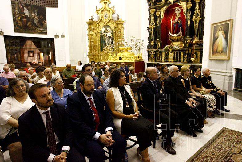 El acto contó con la presidencia del alcalde Manuel Barón, la teniente de alcalde de Tradiciones, Elena Melero, así como los hermanos mayores del Señor de la Salud y de las Aguas, la Virgen de la Salud y de la Virgen de los Dolores, además de representantes de la Pollinica, Estudiantes, Rescate, Socorro, María Auxiliadora y Rocío.