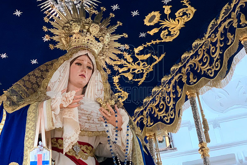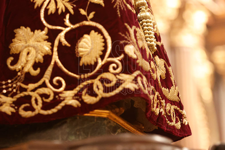 En cuanto a patrimonio, los talleres de Santa Conserva han restaurado la túnica de terciopelo morado bordada en oro. Y para la Virgen, nuevo juego compuesto de broche, pendientes y cuatro alfileres tipo “mariquilla”, elaborados en plata dorada y cristal tallado.