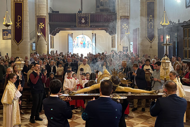 Se «bajó» y no «llovió» agua, «llovió» devoción de todos los que se acercaron este sábado 26 a San Juan y nada más entrar por la puerta principal, se lo encontraron allí, dándoles la bienvenida en el inicio de la nave central en ese contraste del sol de la tarde y el interior del templo. Acostumbrados a buscarlo en su capilla, esta vez los devotos se lo encontraron cara a cara.