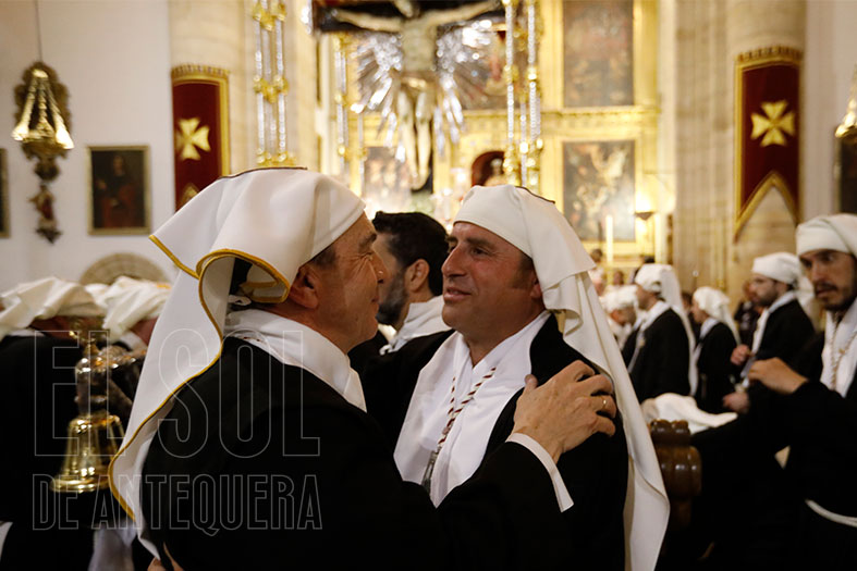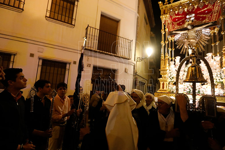 Y el Señor que recibe petaladas, admiraciones y oraciones. Vuelve a su templo, entrado ya en la madrugada. A las 0,25 horas, se reza un Padrenuestro y un Avemaría y culmina un nuevo gran día, donde el Señor sacó a relucir la devoción de siglos que hoy tenemos custodiada por la Antequera del 2025.