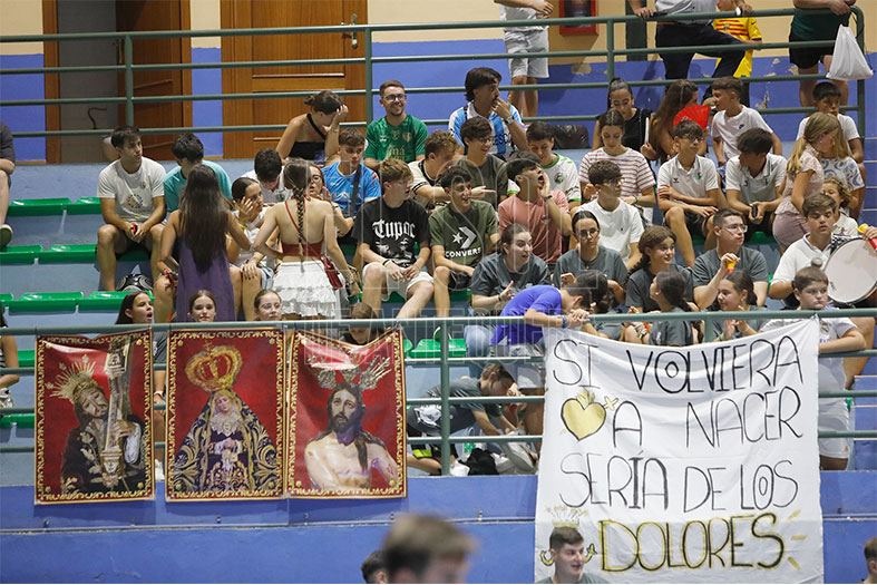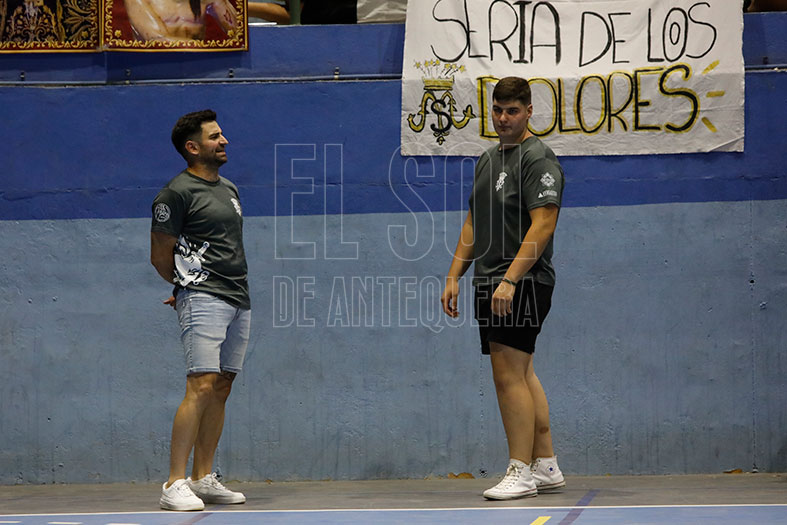 El Pabellón Agustín Rodríguez de Antequera vivió una intensa final de la tercera liga cofrade, que ganó la Cofradía del Socorro ante la de los Dolores, en la tanda de penaltis. Destacó el respaldo en la grada, quinientas personas en la final. La intensidad en la grada y en la pista. La calidad de algunos jugadores. Y la difusión que ha tenido esta tercera edición.