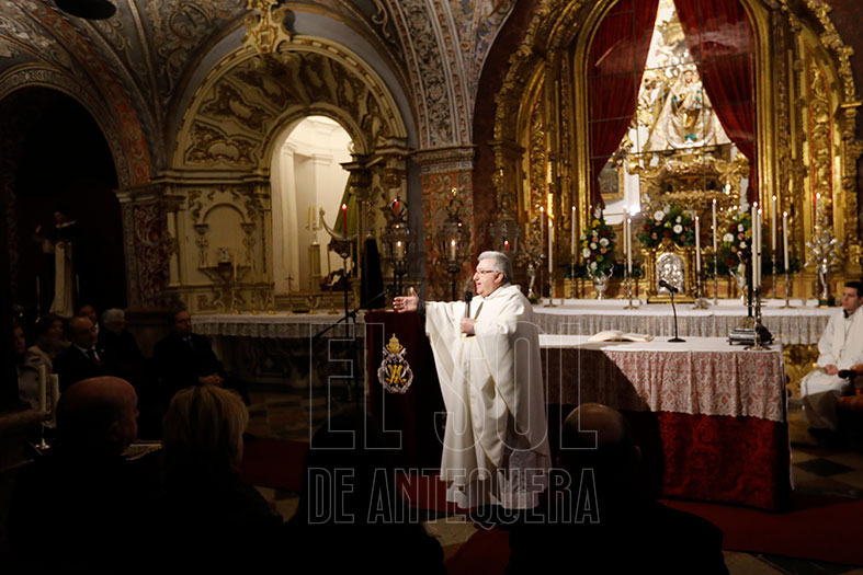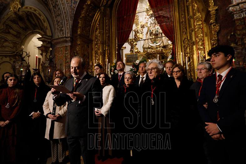 Enrique Cruces Herrera se presentaba al inicio formal en su segundo mandato que sigue al frente tras el cabildo celebrado el pasado 23 de diciembre. La misa fue presidida por el párroco de San Sebastián Serafín Corral y concelebrada por el sacerdote diocesano Ignacio José Ignacio Postigo. El celebrante profundizó en la importancia de rezar el rosario y animó a los cofrades que además de sus fines como hermandad, ojalá promovieran que se rezara más en comunidad en Antequera.