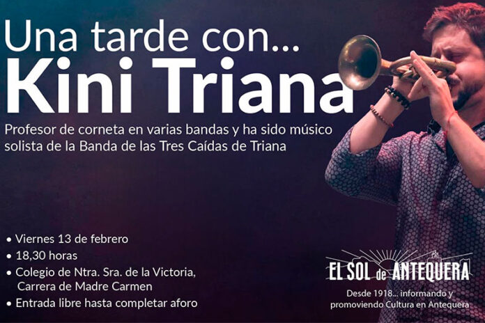 · Una tarde con… Kini Triana: Viernes 13 de febrero a las 18,30 horas en el Colegio de La Victoria. Organiza El Sol de Antequera.