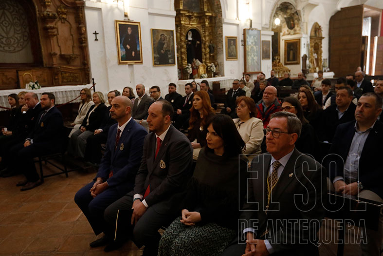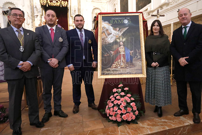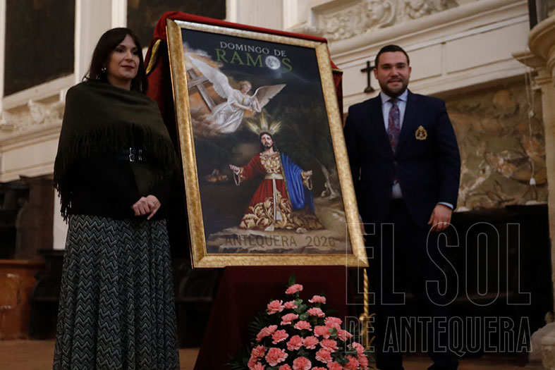 Durante 40 minutos, el que fuera hermano mayor de la cofradía pollinica ya presagiaba que algo grande iba a pasar. «Hay silencios que anuncian júbilo y colores que saben a barrio. Presentar este cartel es en realidad dar el primer golpe de martillo a nuestra espera en cada trazo que estamos a punto de contemplar. Habita la memoria de nuestros mayores y la ilusión de los niños que estrenan palma. Hoy la ciudad se convierte en lienzo para pintar el principio de todo, el día en que Dios camina sobre un suelo de flores, el día en que Jesús nos enseña a orar en ese monte de Antequera que nosotros llamamos Menga, el día en que la esperanza de una Madre se hace eterna y el tiempo se detiene para susurrarnos».