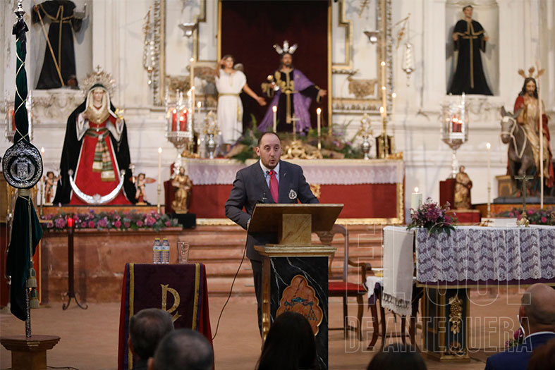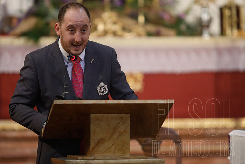 El también hermano mayor del Señor a su Entrada a Jerusalén se vació para compartir lo que para él es su cofradía. «¿Cómo voy a convertirme en la voz del Domingo de Ramos? ¿Cómo voy a ser yo quien os exprese lo que se siente al guiar el Rey de Reyes? Gracias de corazón por ayudarme a decir sí. Llega la primavera y con ella todo se transforma. Antequera se prepara para engalanar sus calles. Los balcones se llenan de color, el azahar perfuma el aire, las tardes se alargan y la espera comienza a ser impaciente».