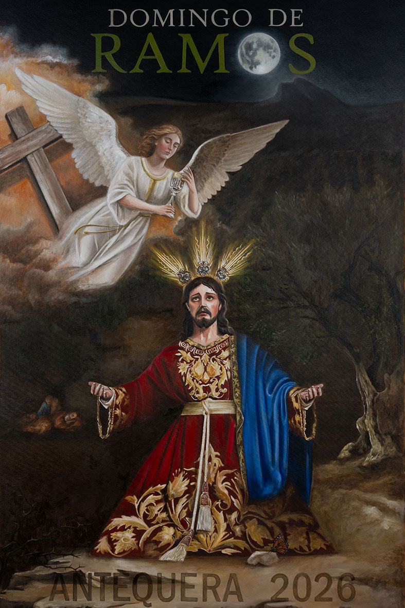 Del Cartel compartió: «Hoy no presentamos únicamente un cartel. Presentamos una puerta que se abre al misterio, al silencio y al comienzo de nuestra Semana Santa». Así, «la obra nos sitúa en uno de los momentos más hondos y humanos de la Pasión: Jesús orando en el Huerto de los Olivos. Es el instante de la soledad, cuando el Hijo habla al Padre en la oscuridad de la noche, y el miedo y la obediencia, el dolor y el amor, se abrazan».