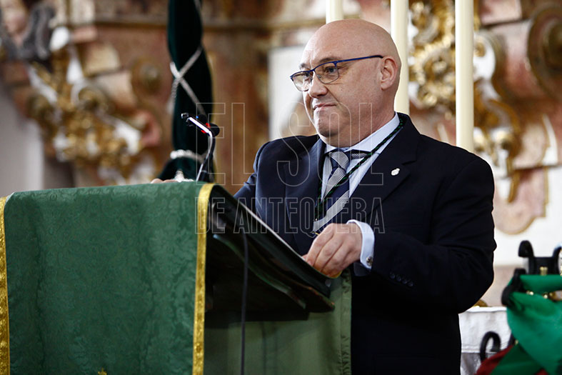 El acto fue dirigido por José Pedro Alarcón González, quien supo dar la bienvenida y abrir el paso a su compañero, destacando sus virtudes y su pasión por el Nazareno. Él fue también hermano mayor de insignia y sigue siendo hermanaco y devoto como el que más.