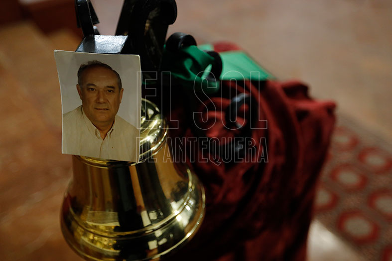 Todo estaba preparado y escrito. En el atril, a un lado, su campana y la bendita banda verde con dos fotos, la de su padre Nono y la del Nazareno. Al otro lado, su martillo, dispuesto para avivar su pasión por el Nazareno que abraza la cruz en el inicio de su pasión.