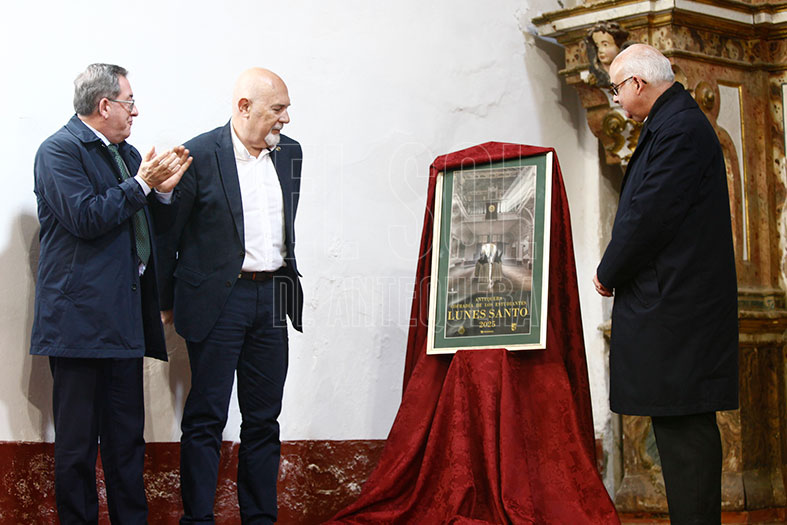 Momento en el que pidió descubrir el segundo cartel, del que dijo: “La composición general de la imagen resalta la solemnidad de las tradiciones de la Semana Santa antequerana, en la que el espacio sagrado de la iglesia es el marco ideal para los rituales de fe y devoción”.