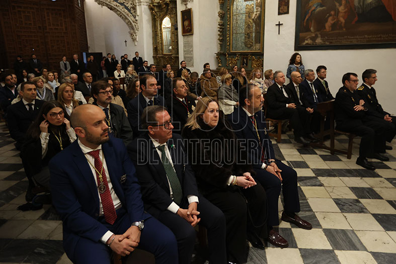 En el templo, todos los hermanos mayores de las cofradías agrupadas, salvo el de la Pollinica. Al término de la misa, la Agrupación quiso reconocer el trabajo del abogado Juan de Dios del Pino en el proceso de resolución de la problemática del encargo del nuevo Resucitado.