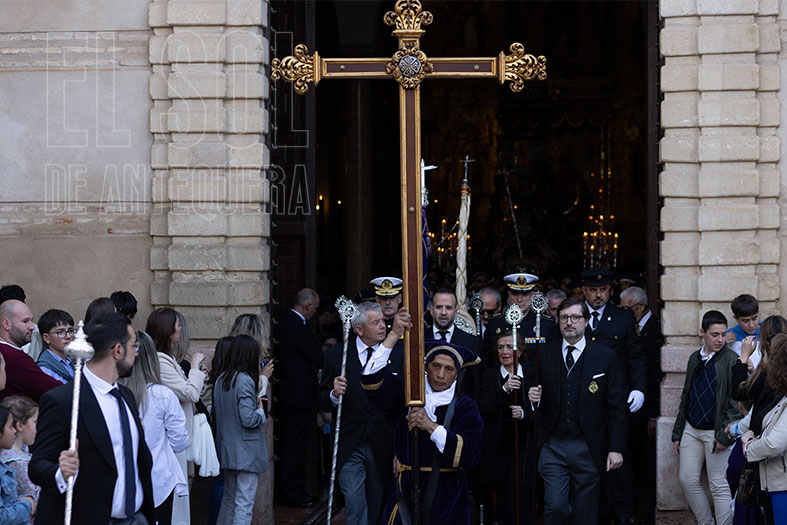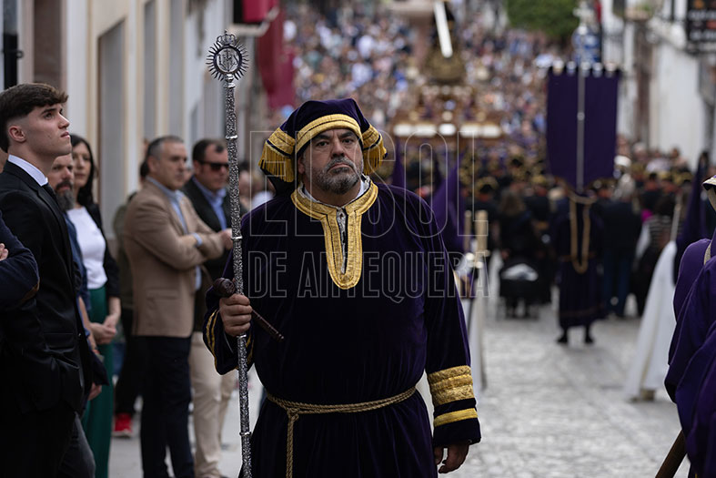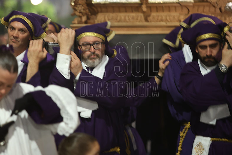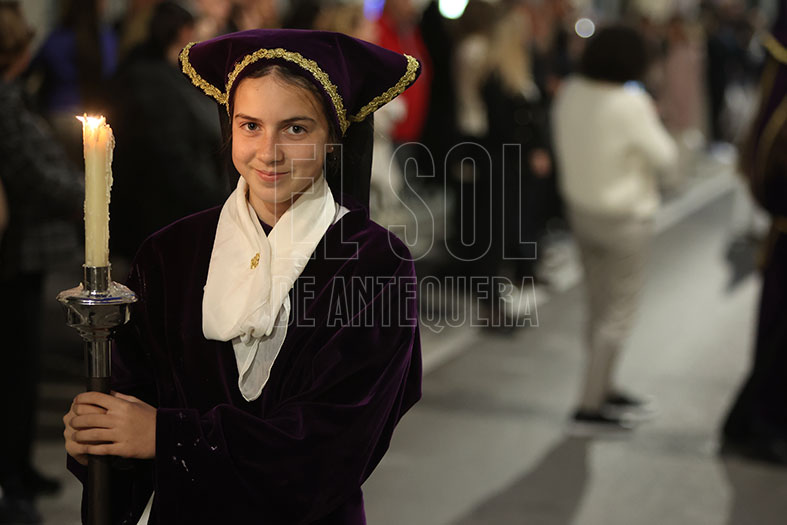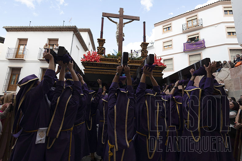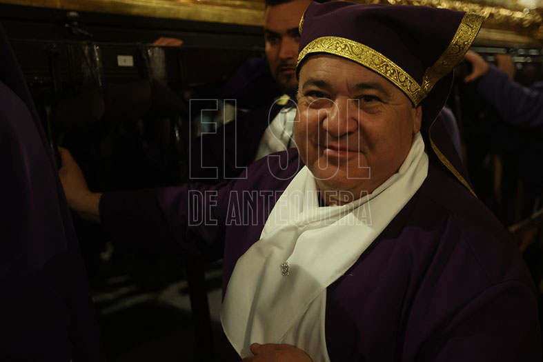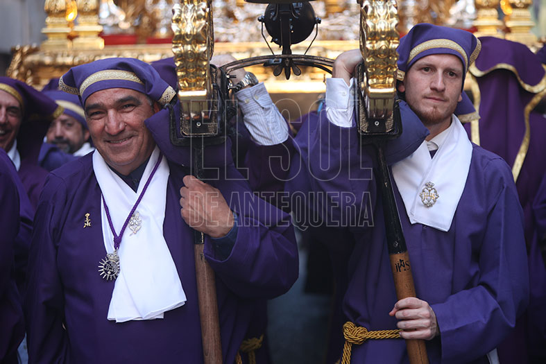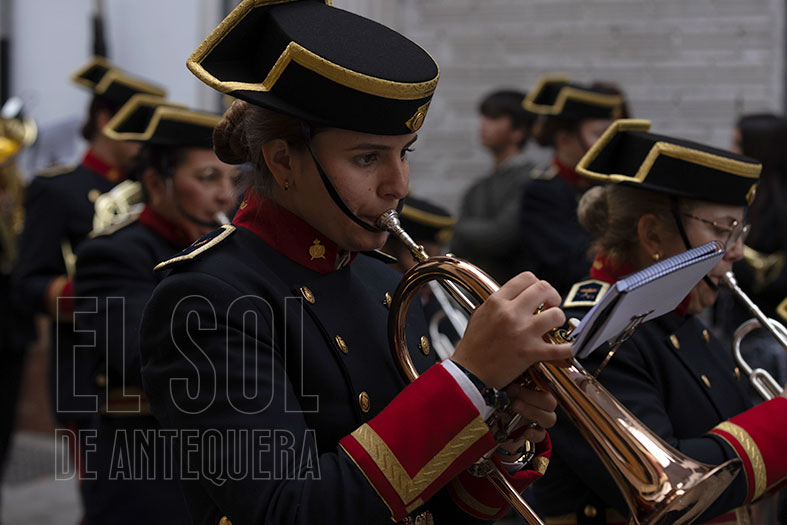 El Viernes Santo comenzaba en Antequera con la Cofradía de ‘Abajo’ que partía desde Santo Domingo, bajando por Encarnación, Calzada y Diego Ponce, sumando nuevo patrimonio y envolviéndose de dos destacadas bandas de la Comarca: la Agrupación Musical “Nuestra Señora de Gracia” de Archidona y la Banda Municipal “Amantes de la Música” de Campillos.