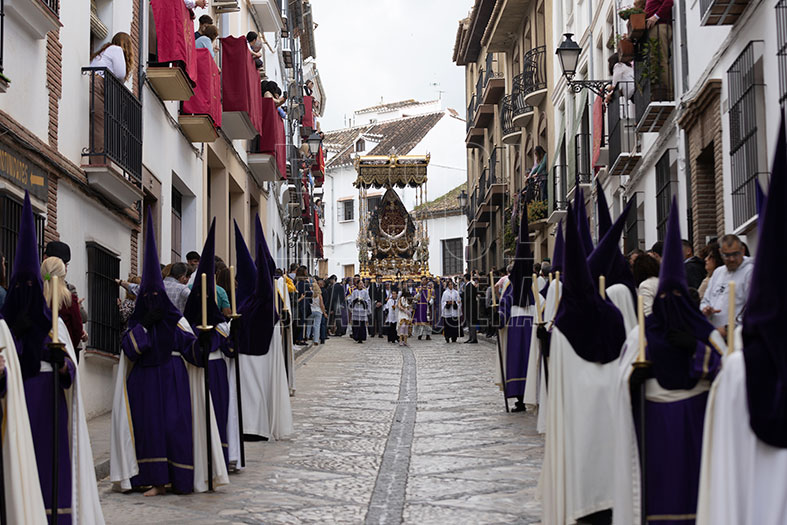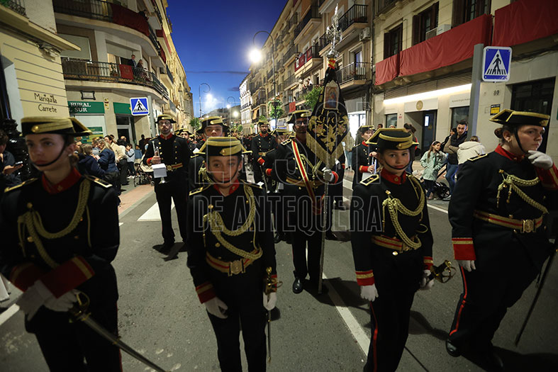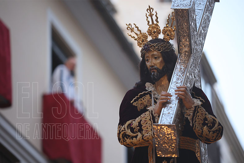 El Dulce Nombre de Jesús sigue creciendo en su peso en la cofradía. La Agrupación Musical “Nuestra Señora de Gracia” de Archidona le guió en su caminar. ¡Ojo con esta agrupación! Su progresión puede romper límites y hay que mantenerla para que no nos pase como con Coronación de Campillos, que no se consiguió mantener y es hoy un referente andaluz. ¡Qué interpretaciones de marchas que hicieron mecer despacio, con clase, con categoría al Nazareno de ‘Abajo’!
