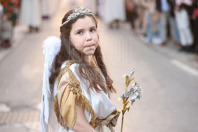 No vino el esperado piquete de Infantería de Marina y de nuevo se anuncia que se recuperará el próximo año. Tras el guión presidencial, varios niños y el trono del Niño Jesús Perdido. Seguían penitentes y la figura de los arcángeles que ocuparon el sitio protagonista de los campanilleros de lujo que abrían el cortejo de sus tronos.