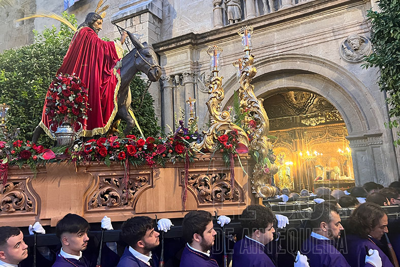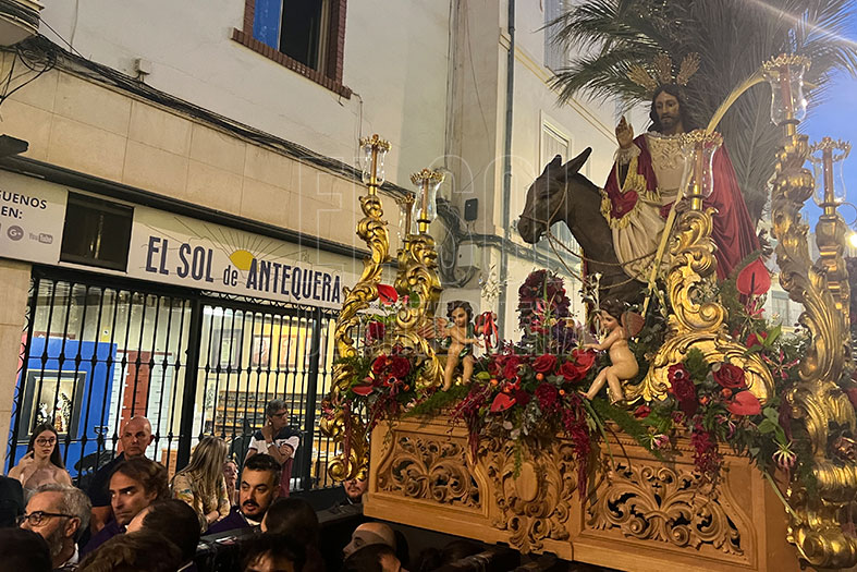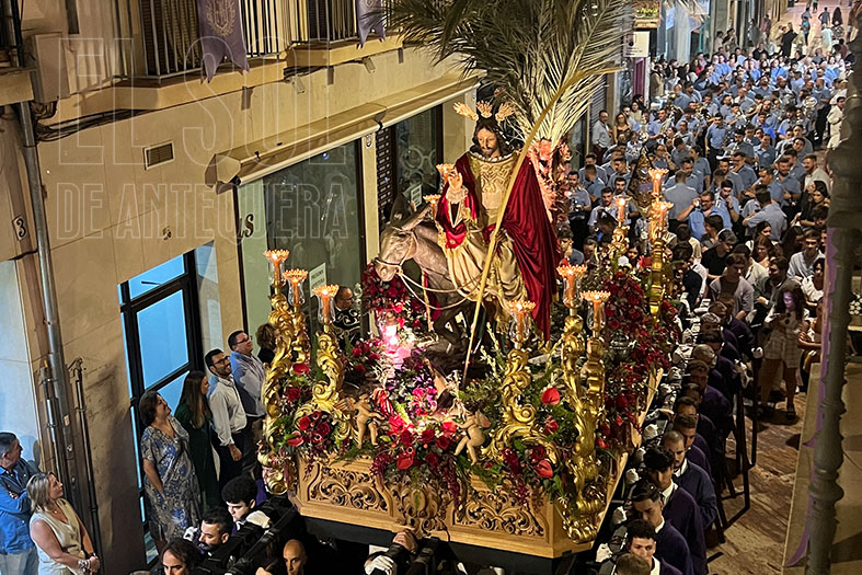 El 75 aniversario de la Cofradía de la Pollinica tuvo una procesión extraordinaria este sábado 27 de septiembre en Antequera, saliendo el Señor a su Entrada en Jerusalén, destacando el paso por calles estrechas y los magníficos sones de la Agrupación Musical ‘La Redención’ de Córdoba.