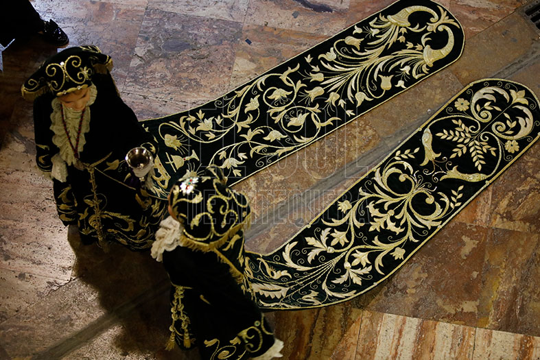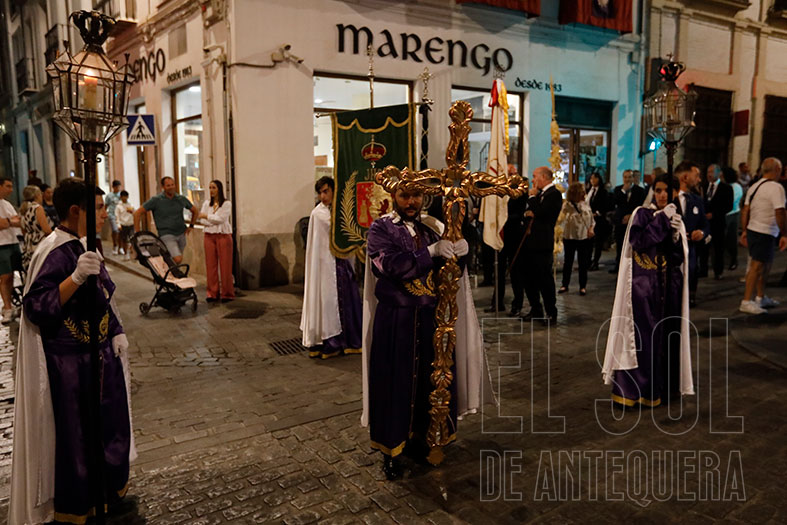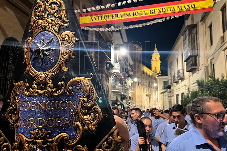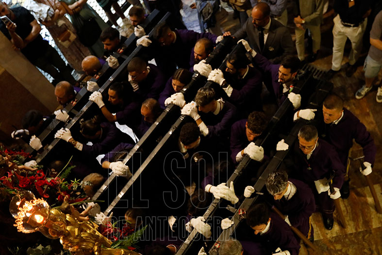 Al salir por Infante don Fernando, la marcha «El pan de vida» de Redención marcó lo que se iba a disfrutar: sones perfectos y sincronización con un trono, con hermanacos vestidos con túnica morada y cíngulo dorado, sin pañuelo ni capuz, pero con corbata negra. Debajo, submarino de cofrades que marcaron el trono, escuchando sus voces que marcaban las mecidas y las marchas. Al ser extraordinaria, muchos cofrades de otras hermandades pudieron ir bajo sus andas.