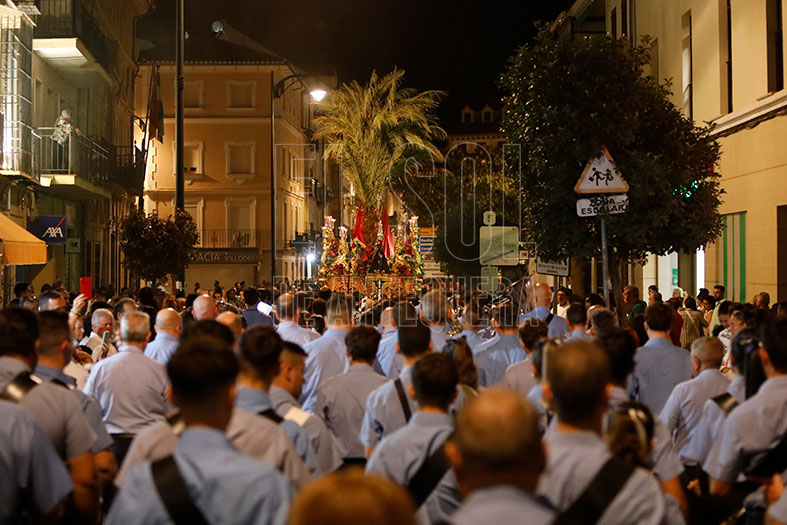 Y salida por Lucena, Madre de Dios y al pasar frente a la Casa de las Columnas, «¡Oh pecador!» marca uno de los momentos cumbres, con petalada y papelillos con la imagen del Señor que marcan el paso por la casa del hermano mayor. Subida y paso por Medidores con presencia de las comunidad del Loreto, paso imposible por Rey y con «La Esperanza de María» se vive el «cangrejeo» y móviles que graban el buen hacer de la banda y las mecidas de los hermanacos.