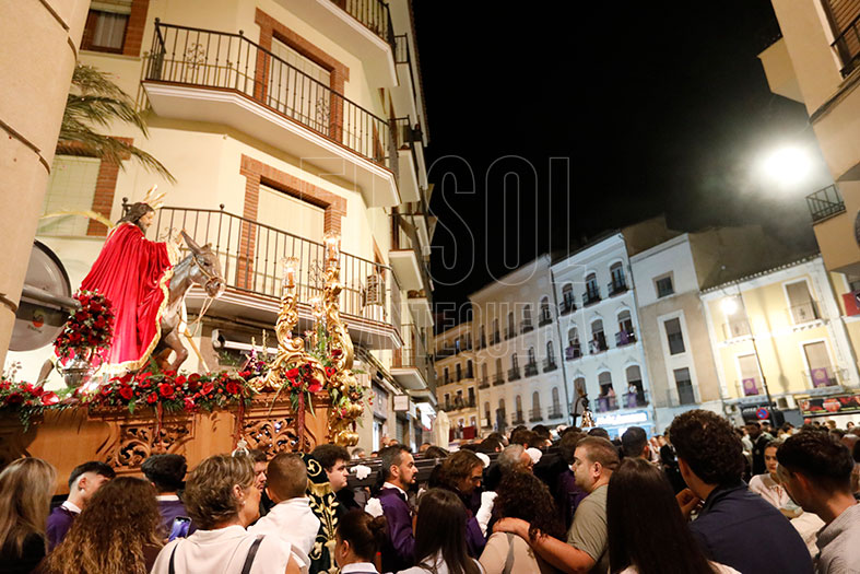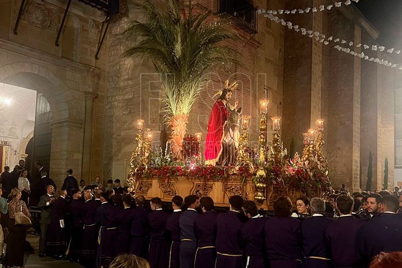 La cofradía del Domingo de Ramos se basó en la forma de procesionar a su Señor de la Pollinica y el acompañamiento musical, una de las agrupaciones más destacadas de Andalucía, que hacía 25 años que no venía a nuestra ciudad. Buscó las calles estrechas, con pasos sublimes por Duranes y Rey. ¡Cuándo se darán cuenta más Directivas de lo que enmudecen estas calles a los cortejos procesionales!