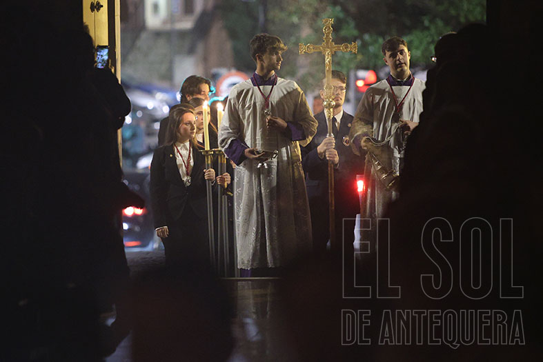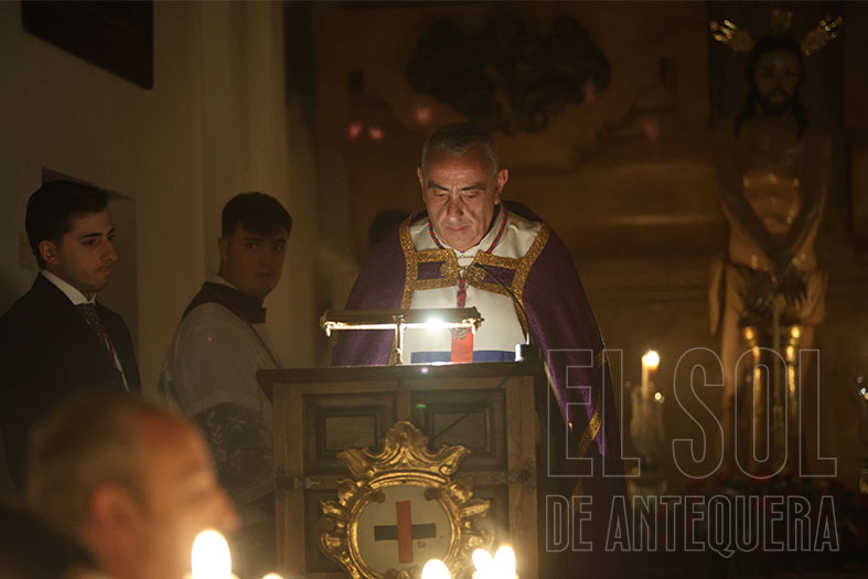 Y en ese justo momento, el Señor preside ya su peana para bendecir a la ciudad en su procesión del Martes Santo. Seguidamente, peticiones, la Salve a la Virgen de la Piedad y reflexión final del Arcipreste, quien pidió mantener el silencio para acercarse, contemplarle y rezarle. Así fue, hasta bien entrada la noche.