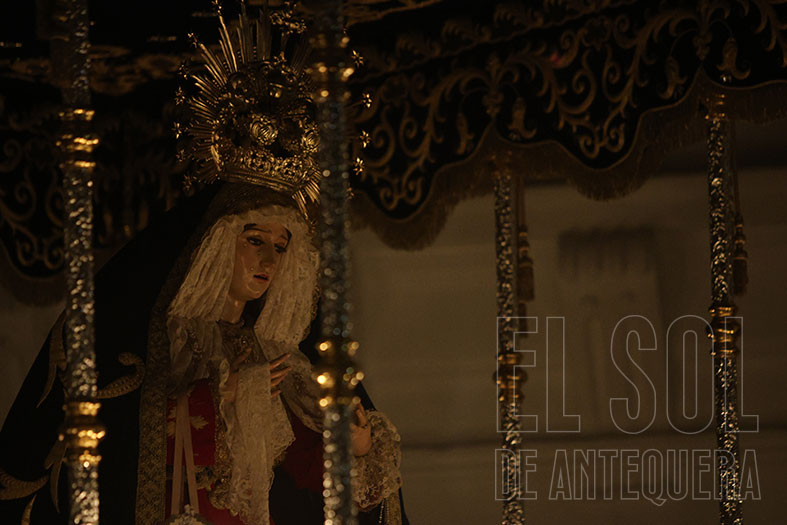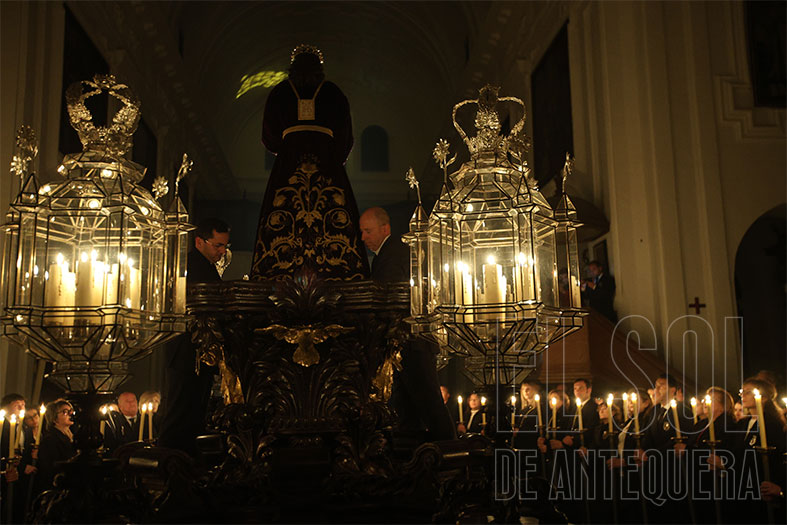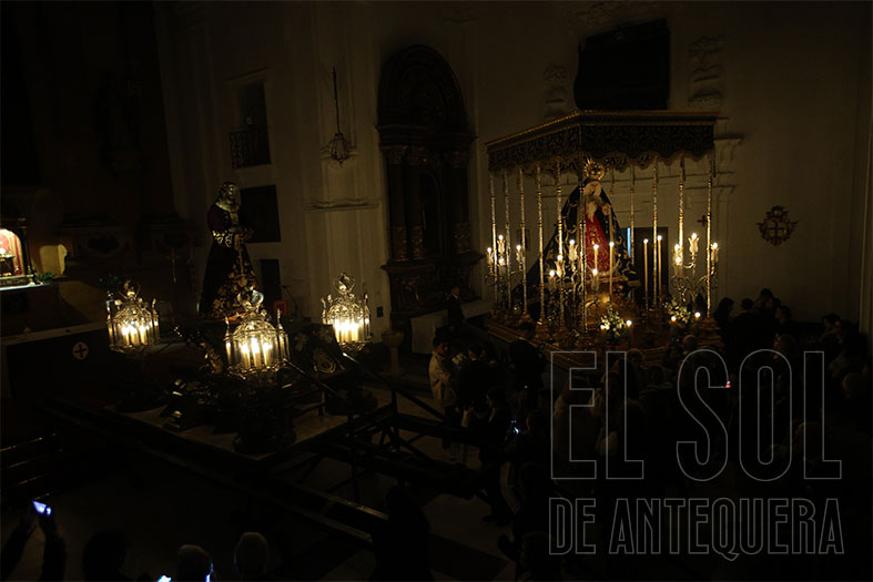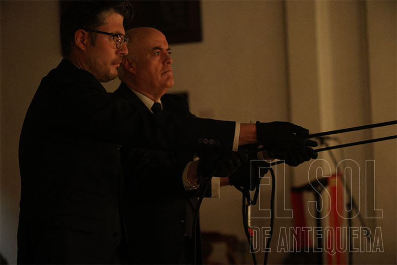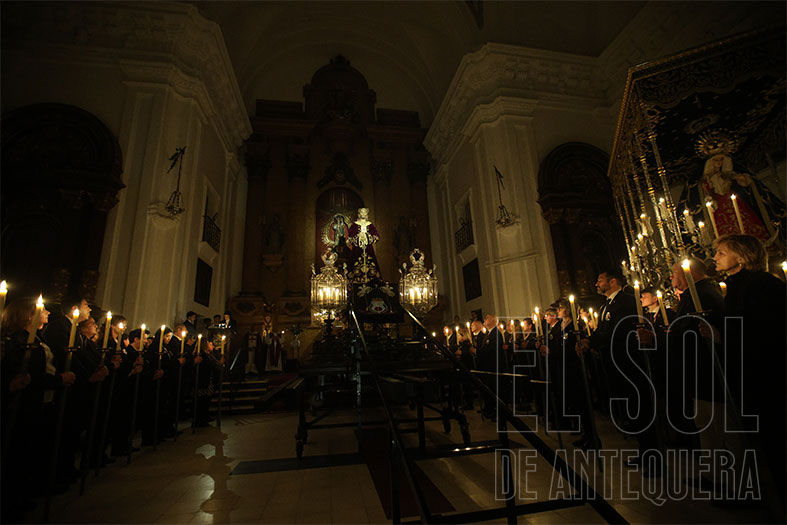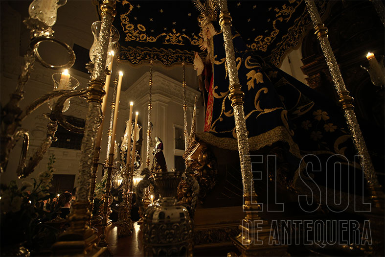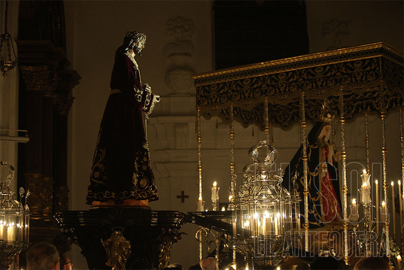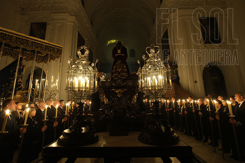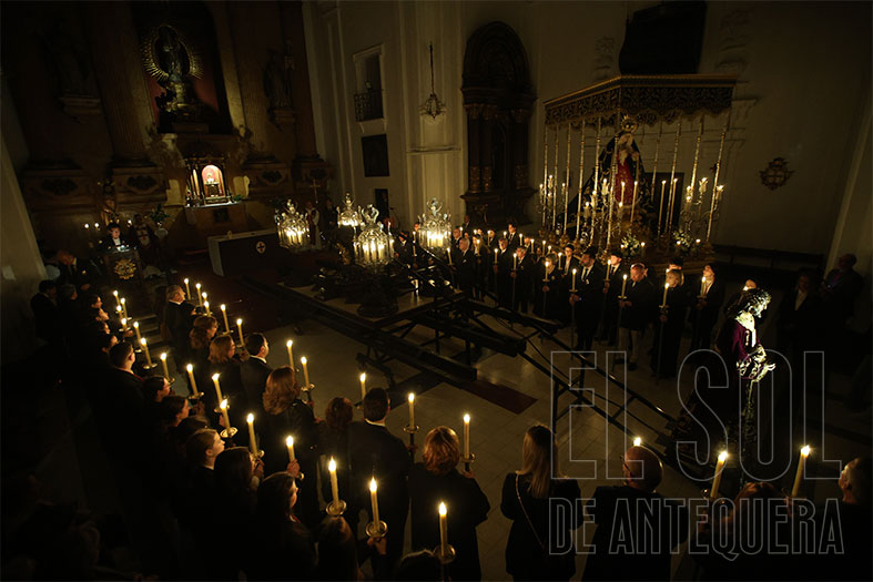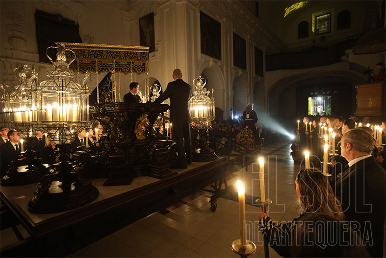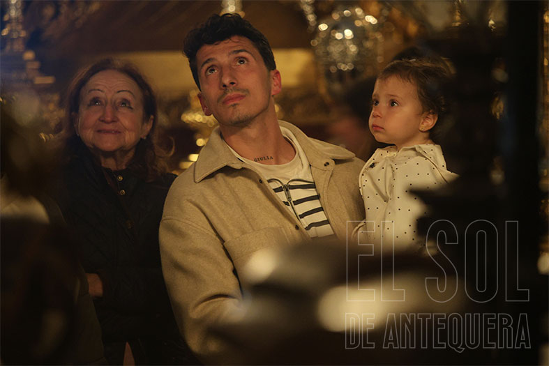 Al término, silencio estremecedor del templo y Javier Subires que inicia a rezar en forma de canto y Pablo Cortés del Pueblo que le acompaña al piano y el Señor, lentamente, como si fuera la vida misma, que es subido a su trono, con el esfuerzo de cuatro devotos que lo hacen ascender. Lo de Subires y Cortés del Pueblo se recordará como hoy lo hacemos con quienes nos hablan de María Barrús la Niña de Antequera.