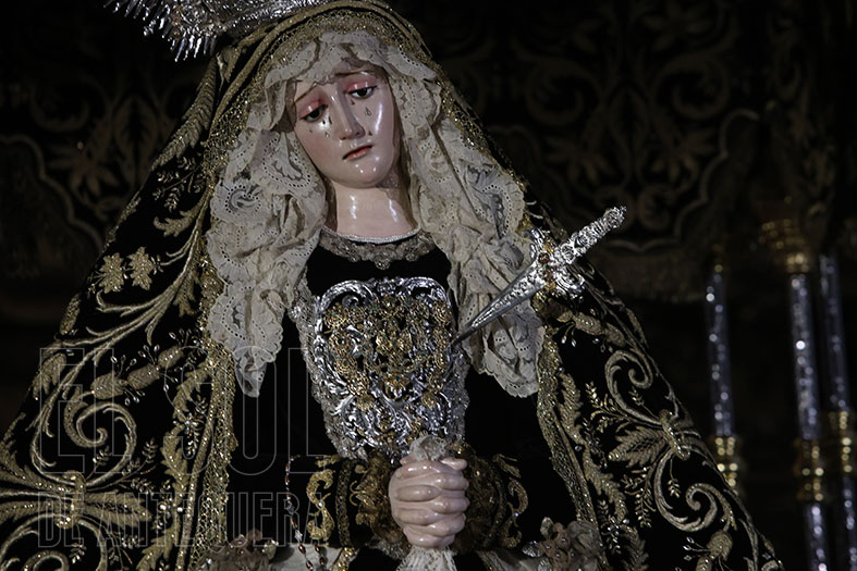 En la Virgen de la Paz, se ha terminado la restauración de la sujeción de las bambalinas interiores del palio por parte de Santa Conserva. La Virgen luce la saya de tisú de plata y el manto negro de Antonia Palomo y lleva un peto de plata antiguo en el pecho.