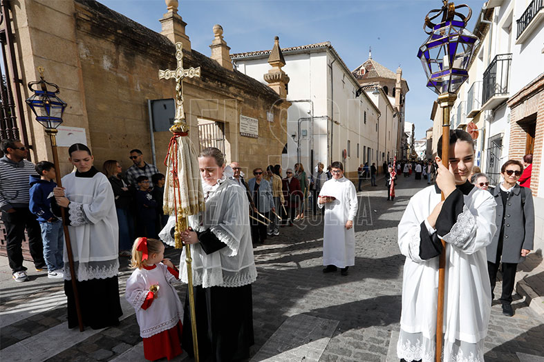 A las 12 del mediodía comenzó desde el interior de la iglesia parroquial de Santiago, con un cortejo formado por una cruz guía y dos faroles, más de una decena de personas alumbrando con velas en dos filas, el guión de la cofradía portado por un directivo, un cuerpo de siete acólitos de monaguillo y faroles, y el trono de la Virgen de la Salud, dirigido por José Castillo, que procesionó sobre las andas del Señor de la Piedad de la Trinidad.