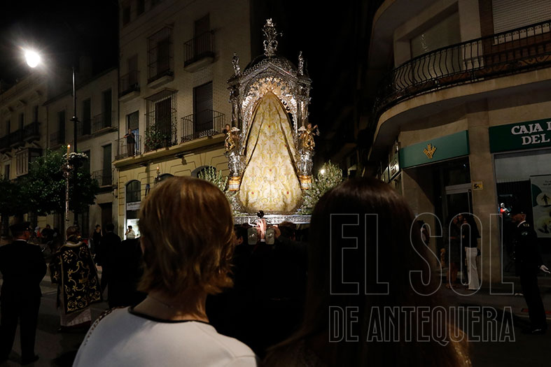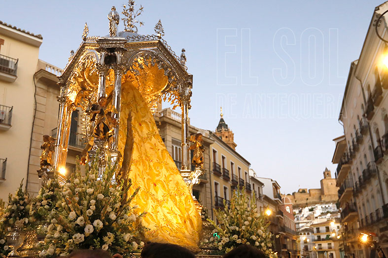 Las calles del centro de Antequera acompañaron a la Virgen de los Remedios en su procesión en la tarde-noche del domingo 8 de septiembre, donde se culminaban sus cultos anuales con novena, oración, salve y misa a la Patrona Mariana de la Ciudad.