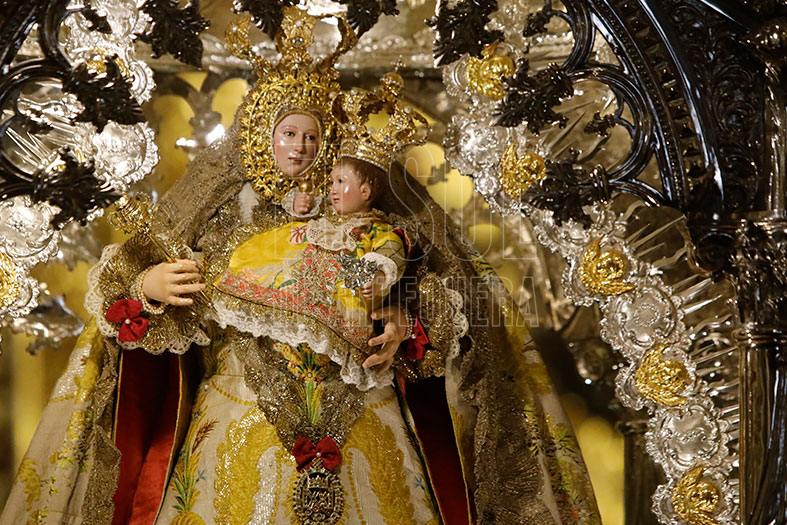 Llegada a San Luis y se encaró de nuevo calle Infante don Fernando, el templete se volvió en la esquina de San Bartolomé en búsqueda del remedio de un devoto que lo precisa. Y regreso al templo, meciendo, con las últimas marchas. El cortejo y guión presidencial formó una fila y a las 22 horas en punto, regresaba por el atrio y ya en el presbiterio, se rezó a la Virgen en el final de sus cultos.