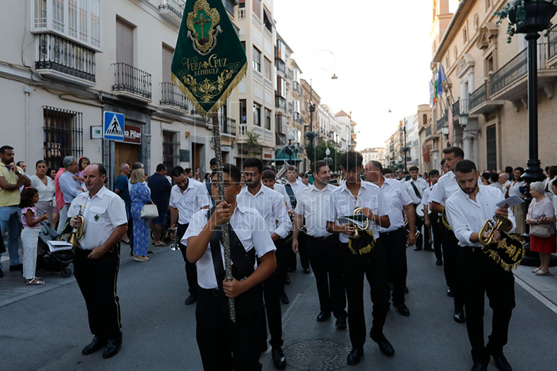 Bajada por calle Lucena, ya de noche, sobre las 20,45 horas, con una estrechez de calle que invita al recogimiento y la fusión con las marchas de la banda, evocando a los Lunes Santo, pero en vez de “Vera Cruz, Madre de los Estudiantes” había una plegaria que hacía sonar como si fuera “Victoria, madre de los Estudiantes”.