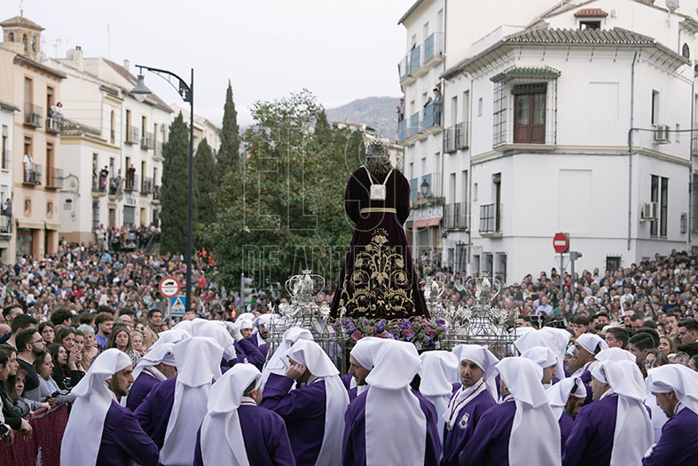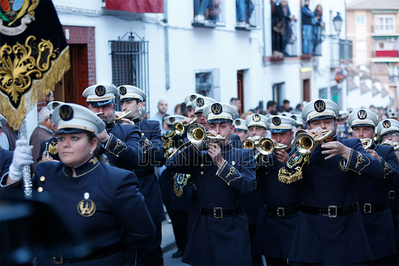Ante una Cruz Blanca, abarrotada, llena, unida, expectante… salía el Señor del Rescate. El trono bendice a los presentes con una vuelta en el sitio. Y la Banda de Cornetas y Tambores María Santísima del Amor y Paz de Montoro que lo borda, emociona y es ya parte del Señor. Nos recordó a la primera vez que escuchamos a Coronación de Campillos precisamente un Martes Santo. De lo mejor que se ha escuchado en mucho tiempo de nuevo en Martes Santo.