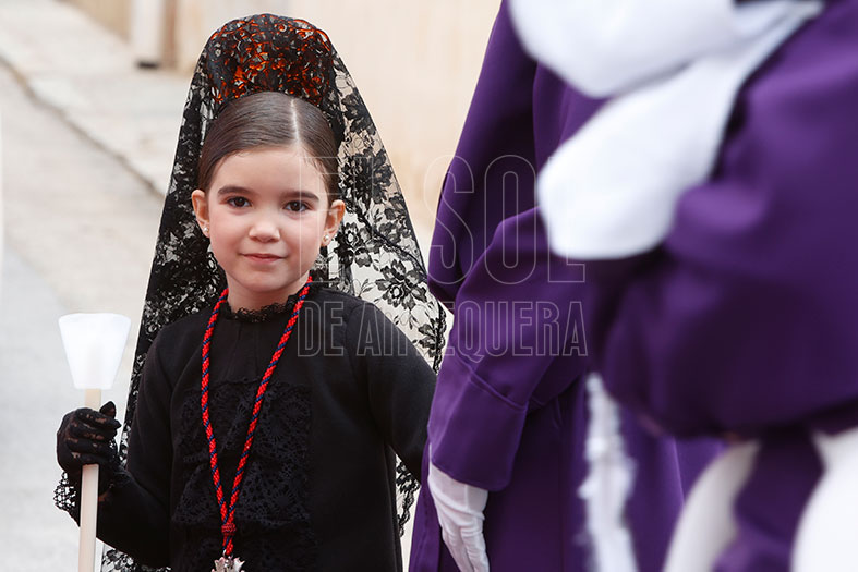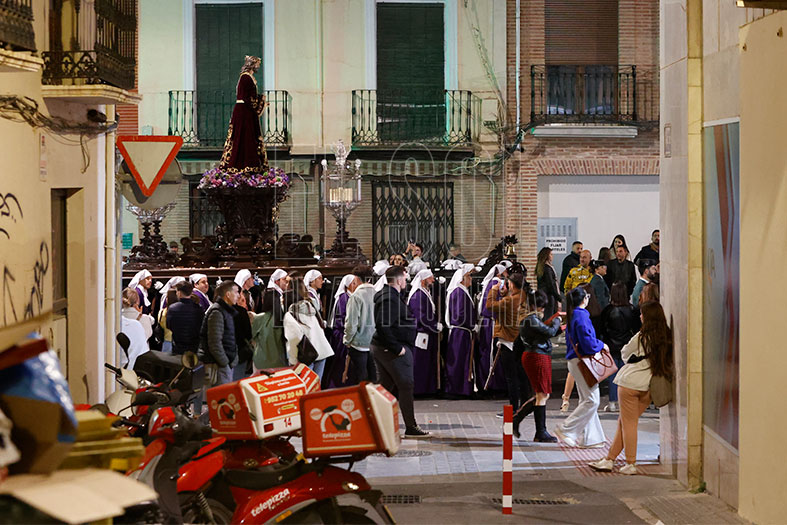 Bajada por Lucena y desde Madre de Dios, regresa el público que vuelve a llenar la Cruz Blanca. Llama la atención los jóvenes anónimos que no quisieron perderse ese momento. «Encuentro» entre las dos imágenes al regresar a su barrio. Tras una ordenada salida, aquí la Cofradía, una vez cumplido su recorrido es cuando lo dio todo para unir los dos tronos y hacer vibrar a la calle.