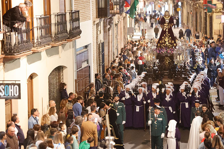 Y para terminar, las dos imágenes van bajan y regresando a su templo. Repetimos: ¡lleno en la Cruz Blanca! en una noche donde los de La Trinidad se quitaron la espina de la lluvia del pasado año y donde el pueblo habló: emoción en las calles estrechas y aplausos para el orden, respeto y entrega de la Cofradía del Martes Santo en la Semana Santa del 2023.