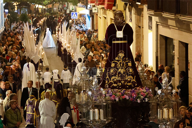 Y entrada en Cantareros donde las aceras reconocen el gesto delicado de la vuelta de los tronos, los sones de las bandas y lo que significan las imágenes para el pueblo y en lo lato, la luna. Aplausos generalizados y en busca del recorrido oficial. Más de un millar de personas alumbraban tras el Señor.