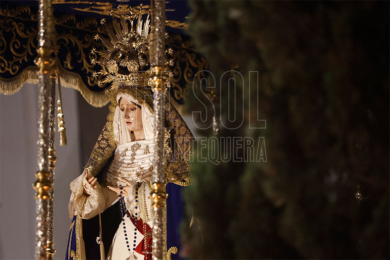 Y si La Vega puso el sentir a flor de piel, qué decir de la doble curva con Merecillas y Laguna con La Antequerana de fondo. Marchas, vítores, oraciones, emoción y mecidas increíbles. Escuchar los aplausos anónimos, sin contagios fingidos, los vivas que salen del corazón, la sintonía de las bandas con los tronos y los balcones que acarician la aureola de las imágenes, fue… impresionante.