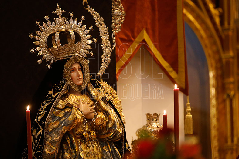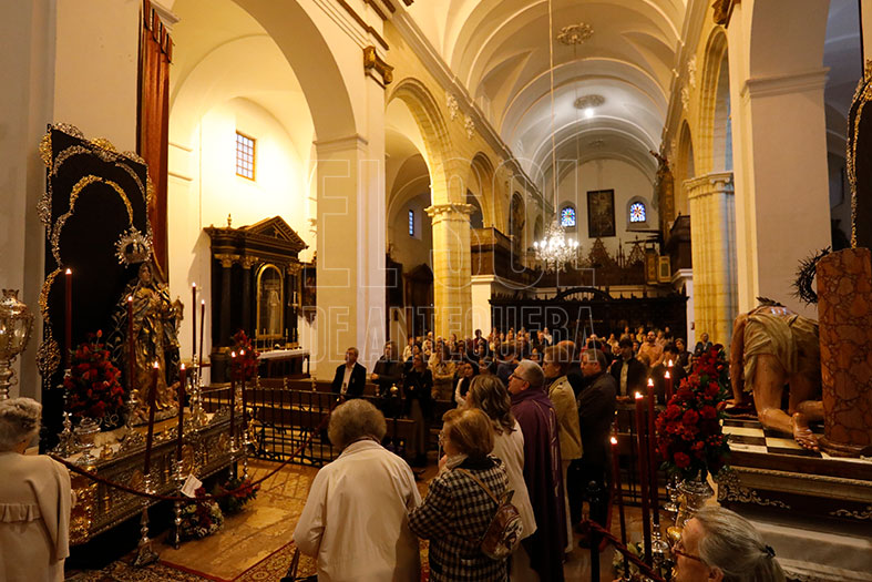 Las dos imágenes, las del Señor y la Virgen del Mayor Dolor, se dispusieron en sendos altares en el presbiterio, lo que permitió a los devotos a que se acercarán más aún a ellos.