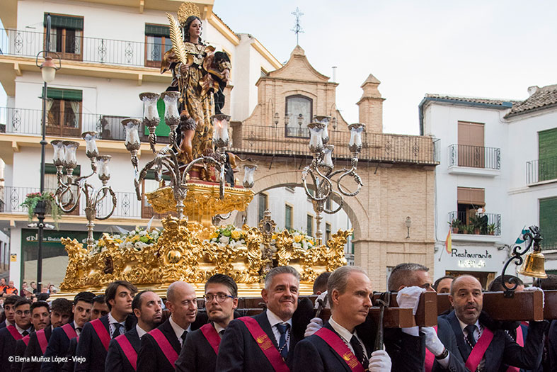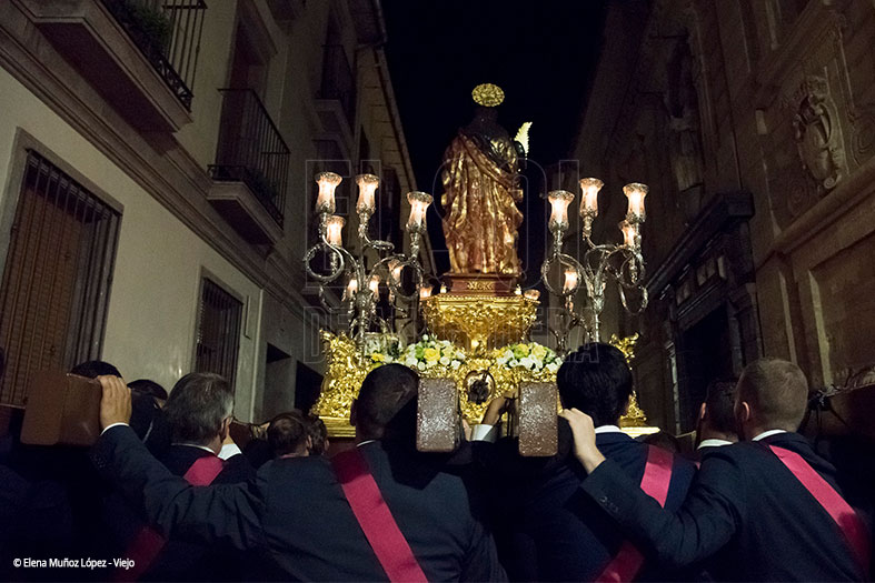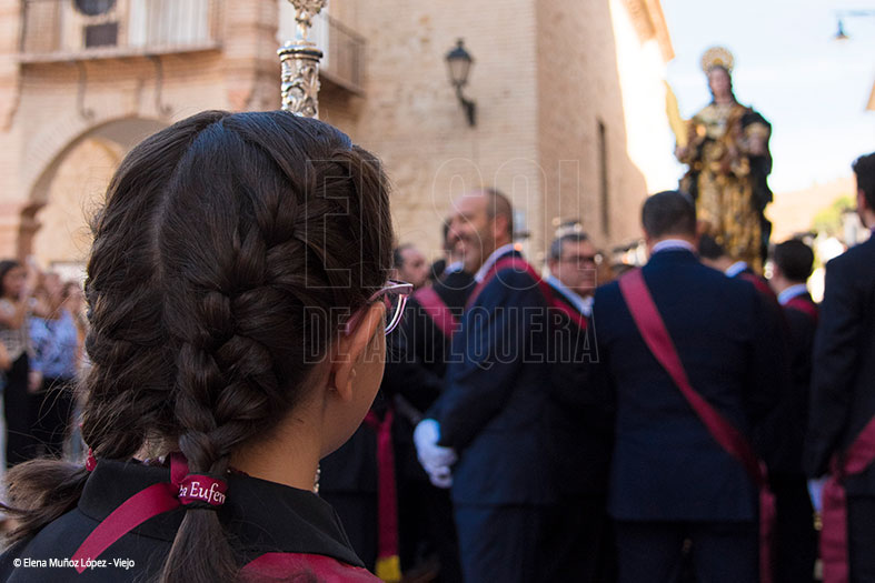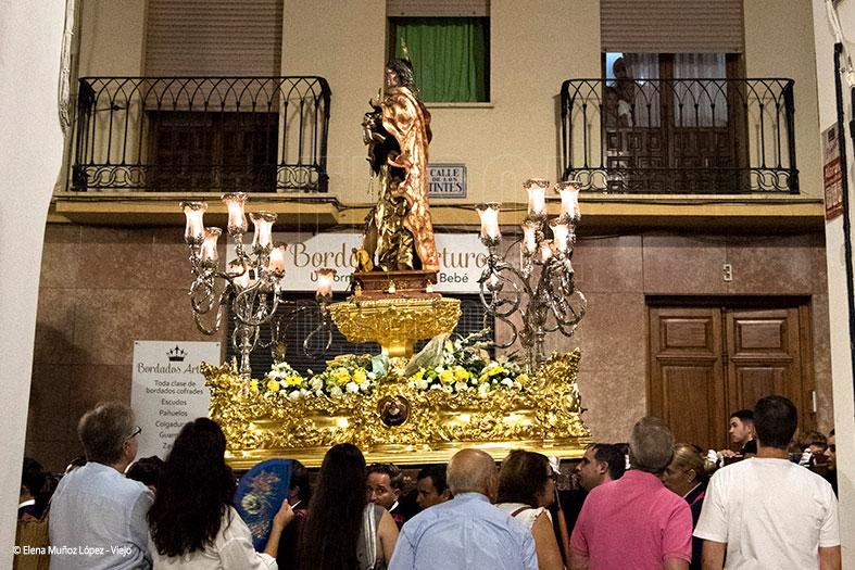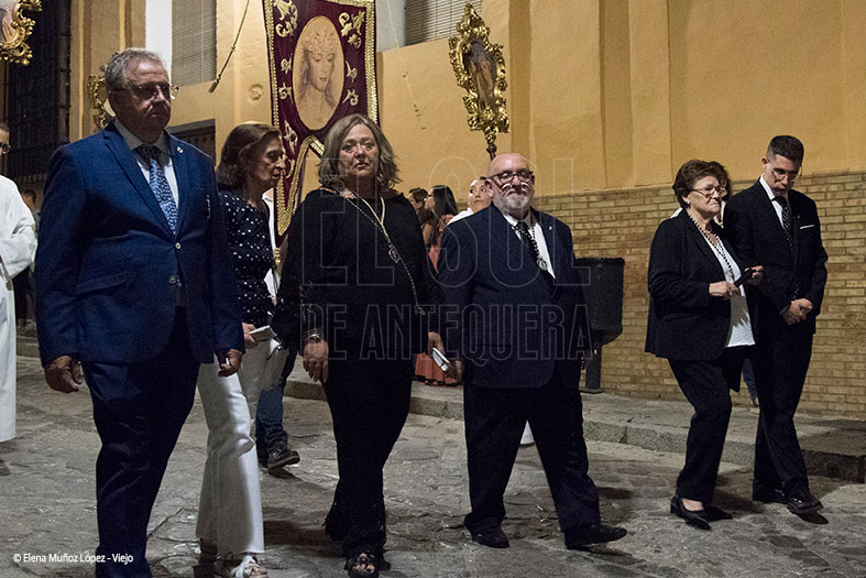 Antequera vivió este sábado 13 de septiembre su procesión histórica, en la que Santa Eufemia recorrió las calles de su ciudad, donde se le ofrecieron candelas y destacó la imagen patronal por ir con palma y nimbo dorados, así como la conjunción perfecta de sus 72 hermanacos con la Agrupación Musical ‘La Estrella’ de Jaén que dio un recital de cómo interpretar un repertorio de marchas cofrades en una tarde noche con 32 grados, con una elevada temperatura impropia del mes de septiembre.