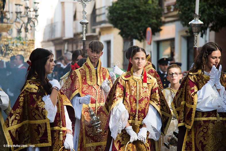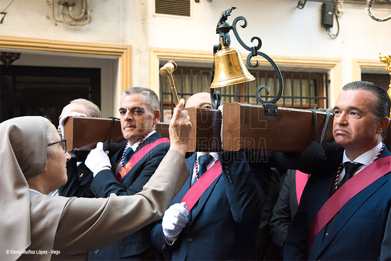 El cortejo lo abría una cruz guía con el guión, acompañando al hermano mayor, Miguel Ruz Domínguez, representantes de cofradías de Gloria y Pasión, así como de la Orden del Infante don Fernando y Santa Eufemia.