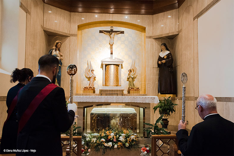 Tras salir desde Santiago, paso por Carrera de Madre Carmen donde hubo rezo ante la iglesia de La Victoria, primero en la capilla de la Beata y luego en la puerta del templo donde las religiosas franciscanas cantaron en esa fusión de santas, la de Calcedonia y la que está en camino.