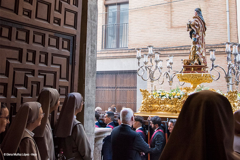 Hubo recogimiento ante los conventos del Loreto y Encarnación. Rezos y delicia escuchar a las carmelitas calzadas cantar a la Santa de Calcedonia. Desde allí se entró en calle Encarnación donde hubo candela ante el monumento al Infante don Fernando en el Coso Viejo alrededor de las 22 horas. ¡Qué estampa! Fue el punto álgido de la procesión, con más gente y con más fusión de viaje a 1410.