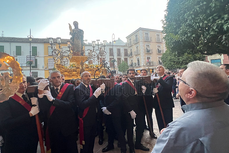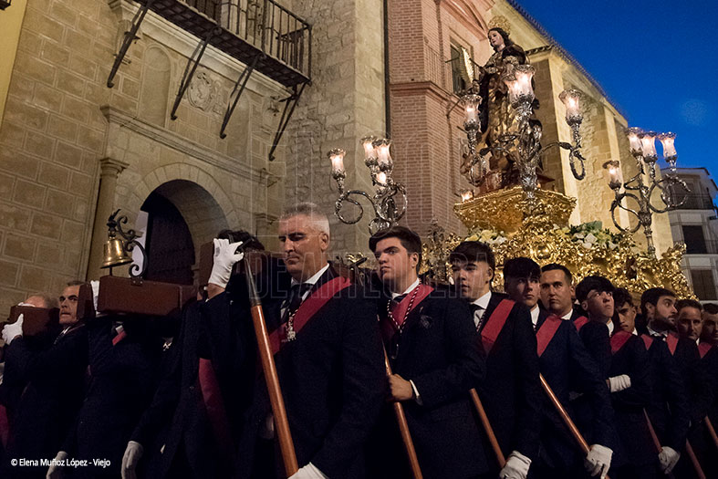 Y entrada a la calle Infante don Fernando con visita a la iglesia de San Agustín que abrió su puertas. De allí, bajada por Lucena hasta la esquina de Medidores donde se recorrió un tramo de calles estrechas por Tintes, con esa fusión de estrechez, solemnidad, mecidas acordes y La Estrella, ¡qué recital! A su amplio repertorio, estrenaron «Dolores y Misericordia» que evoca a las antiguas procesiones de la Santa, así como destacaron la interpretación de «Medea», «Sueños de Luna gitana», «En la cena del Señor» y «El galeón del Dulce Nombre». Si Tres Caídas marcó una época con Santa Eufemia en Antequera, La Estrella está escribiendo el suyo.