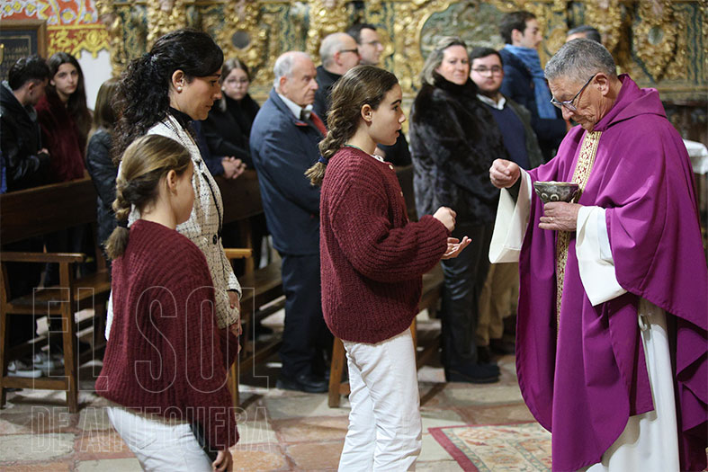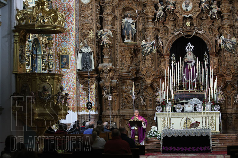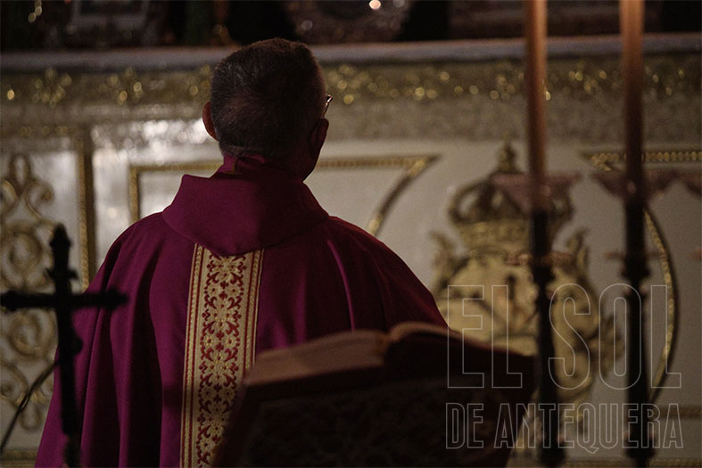 Las misas comenzaron con el párroco Serafín Corral, seguidas del carmelita Antonio Jiménez y a terminar por el antequerano vicario Juan Manuel Ortiz Palomo. Lo sacerdotes profundizan en las lecturas del día, en la petición por la paz y en el dolor de una Madre por perder a su Hijo.