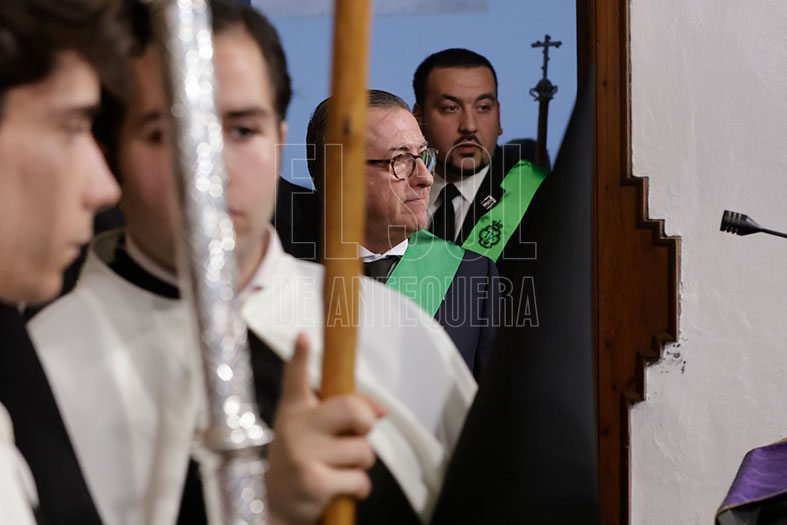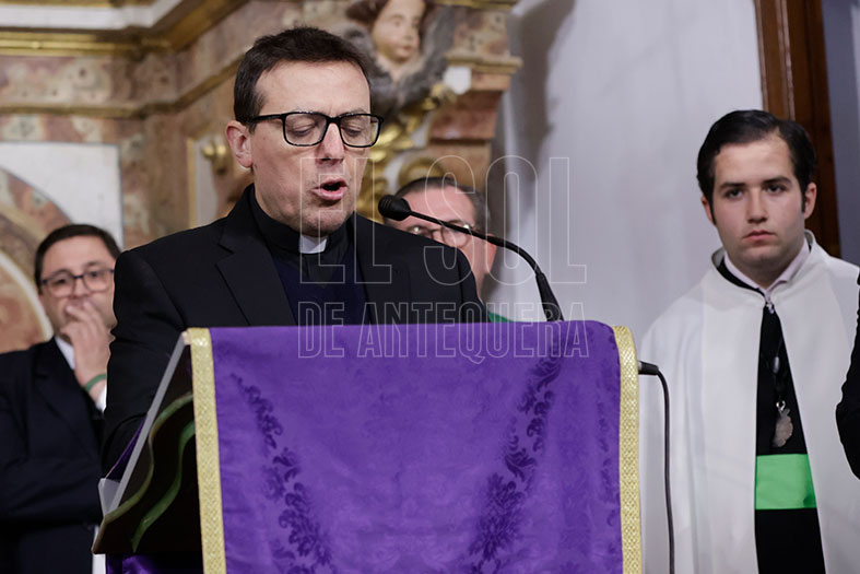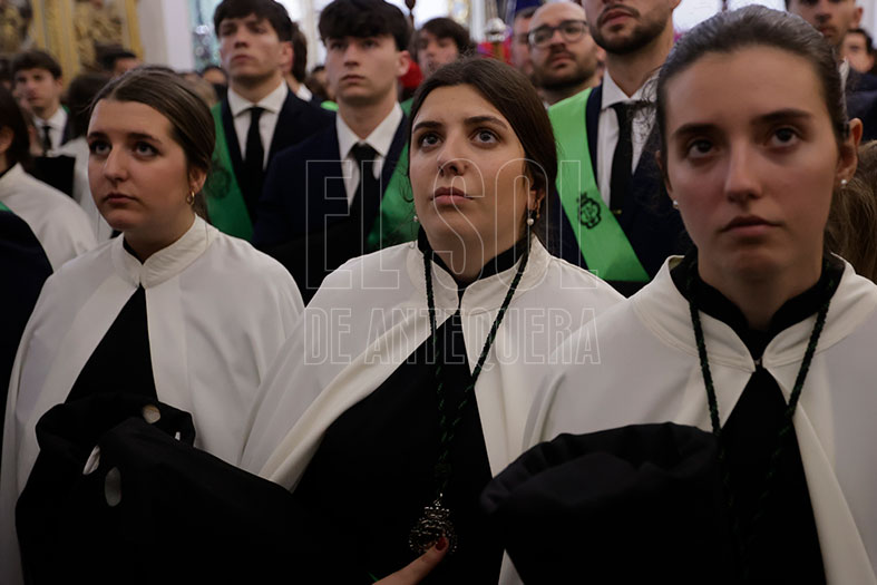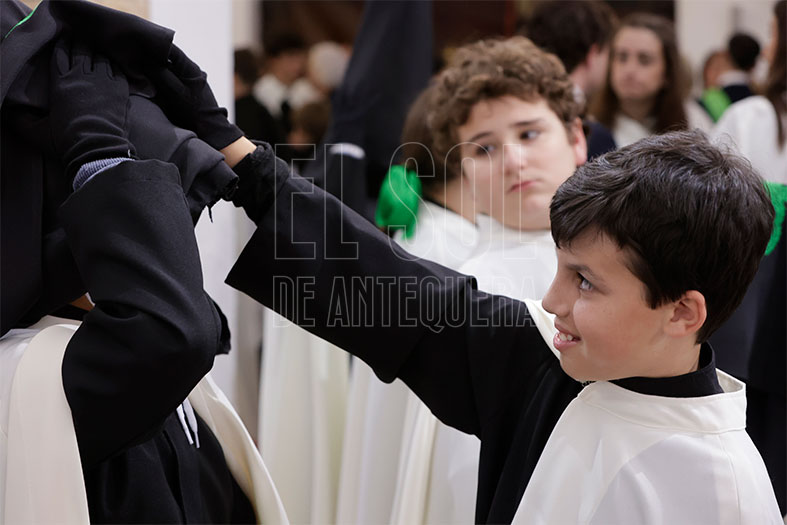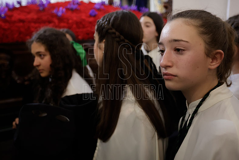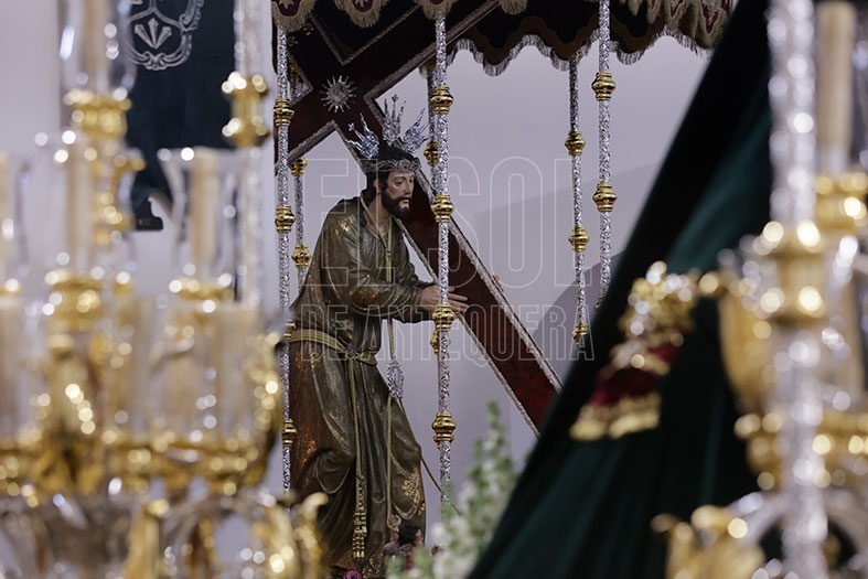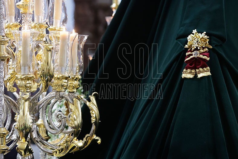 El museo cofrade se quedó en casa. Cinco siglos de devoción han llegado a nuestros días, gracias al amor y custodia que le ofrecen generación tras generación y la Cofradía de los Estudiantes decidió no salir este Lunes Santo de la Semana Santa de Antequera de 2024.