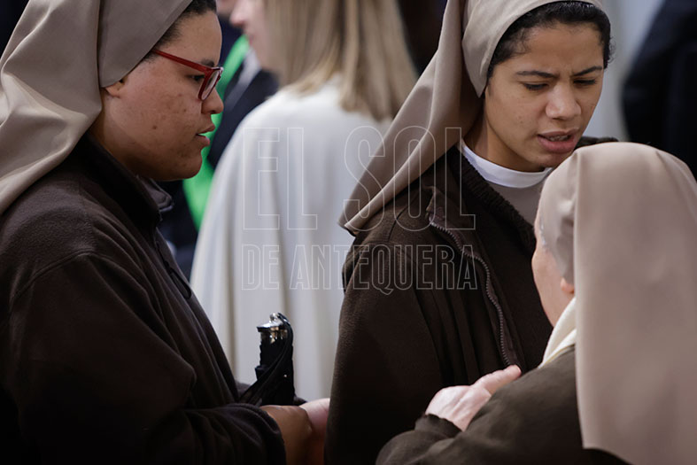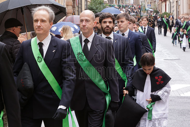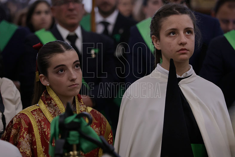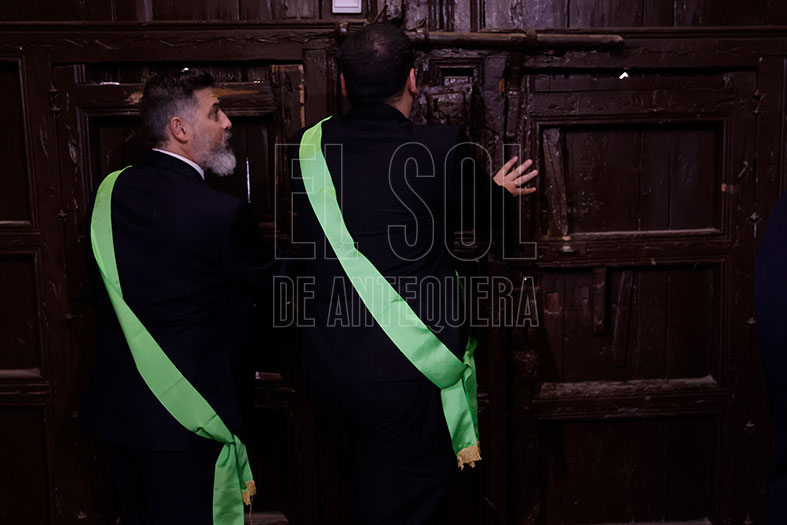 Y en el tránsito de la Capilla de la Sangre, preparada la Coral Ciudad de Antequera y la Banda de Música Vera Cruz de Almogía. Momento en el que el hermano mayor de la Virgen toca la campana y mientras que todos los hermanacos miraban a la Virgen, la coral y la banda interpretan el «Ave María de Caccini». Si alguien ha imaginado alguna vez que se siente allá arriba, basta con imaginar lo que se vivió en estos momentos.