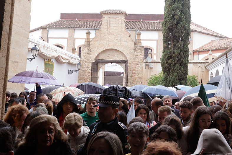 Y así fue. Salió la Directiva y su Hermano Mayor que anuncia la decisión de no salir. Pidió a los hermanacos que aguardaran junto a las andas y se abrieron las puertas del templo para que pudiera entrar la gente. Llovía a la hora de la salida.