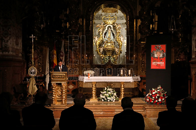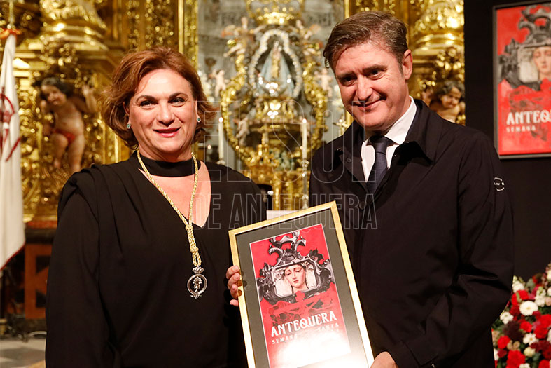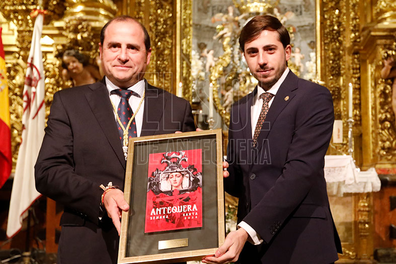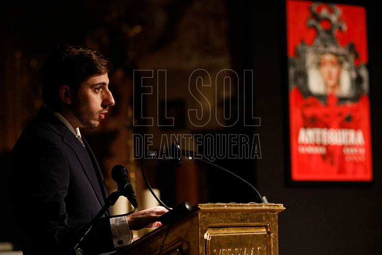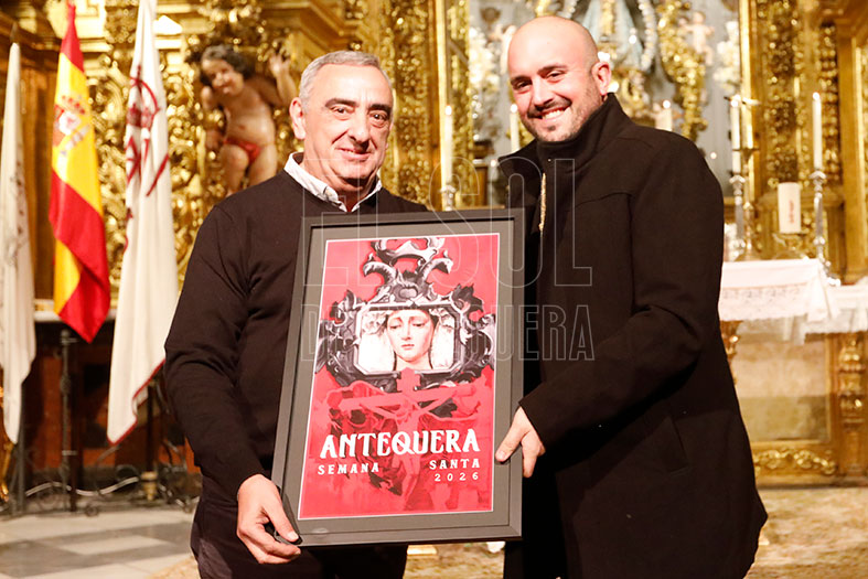Y terminó exclamando: “Ahora sí, queda presentado oficialmente el Cartel de la Semana Santa de Antequera y sus desfiles procesionales del año del Señor 2026”. Fue muy aplaudido y se emocionó al cantar a su tierra.