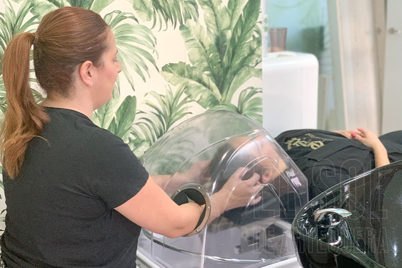 Este servicio de spa cuenta con “vapor de ozono, luz de infrarrojos, los chorritos de agua que tanto gustan, una experiencia que merece la pena”. Este servicio permite no sólo relajación, sino que ofrece así un cuidado más enfocado en el cabello y una renovación del mismo.
