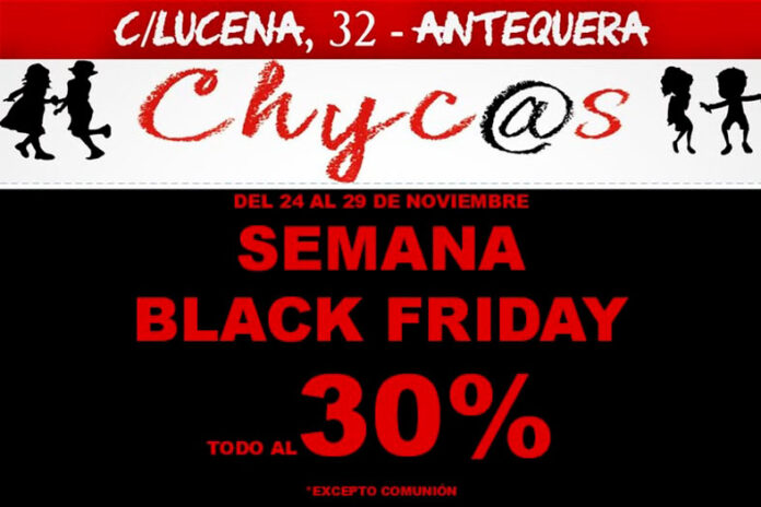 Chyc@s en pleno centro de Antequera, viven su semana Black Friday del lunes 24 al sábado 29 de noviembre. Durante estos días, todas sus prendas tienen un 30 por ciento de descuento (excepto comunión).