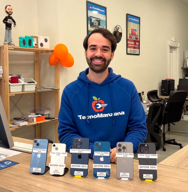 Uno de los productos más demandados esta Navidad es, sin duda, el iPhone KM.0, el producto estrella de TecnoManzana. Se trata de iPhones prácticamente nuevos, con un uso mínimo (procedentes de exposiciones, devoluciones o excedentes de stock), que se entregan revisados, con garantía y a un precio muy inferior al de uno nuevo.
