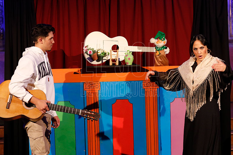 Miguel Pino y Antonio Pino volvieron a sacar las sonrisas de los más pequeños donde un duende travieso, dueño de una guitarra que surca los aires para conducir al público por los distintos palos del flamenco.